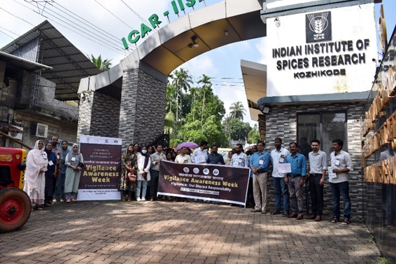 ICAR–Indian Institute of Spices Research, Kozhikode observed Vigilance Awareness Week 2025 from 28 October to 2 November 2025 with the theme “Vigilance: Our Shared Responsibility.” The observance began with an Integrity Pledge administered to staff, students, and workers, reaffirming collective commitment to transparency and ethical conduct. A series of awareness programmes were conducted within the institute, including slogan writing, elocution, cartoon drawing, and quiz competitions, which saw enthusiastic participation from staff and students. A Vigilance Awareness Rally was also organized to spread the message of integrity among the public, during which PIDPI pamphlets in English, Malayalam, and Hindi were distributed.